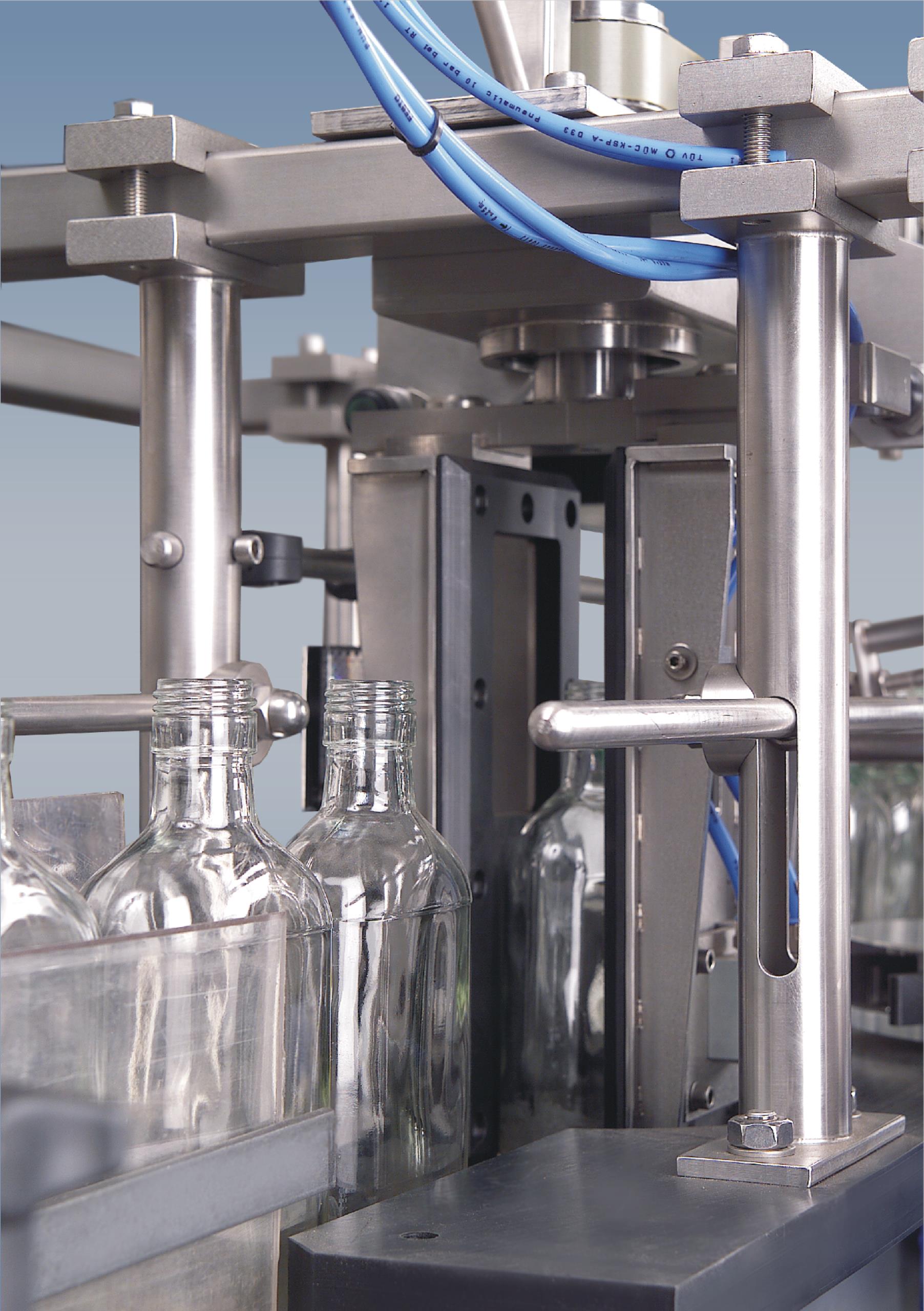 The positioner is used for the correct positioning of non-round glass packages before the next stages of production, e.g. marking, blow control and palletizing. Ensures continuous operation in automatic mode